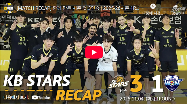 | [MATCH RECAP] 함께 만든 시즌 첫 3연승 | 2025-26시즌 1ROUND 251104 vs우리카드 | |