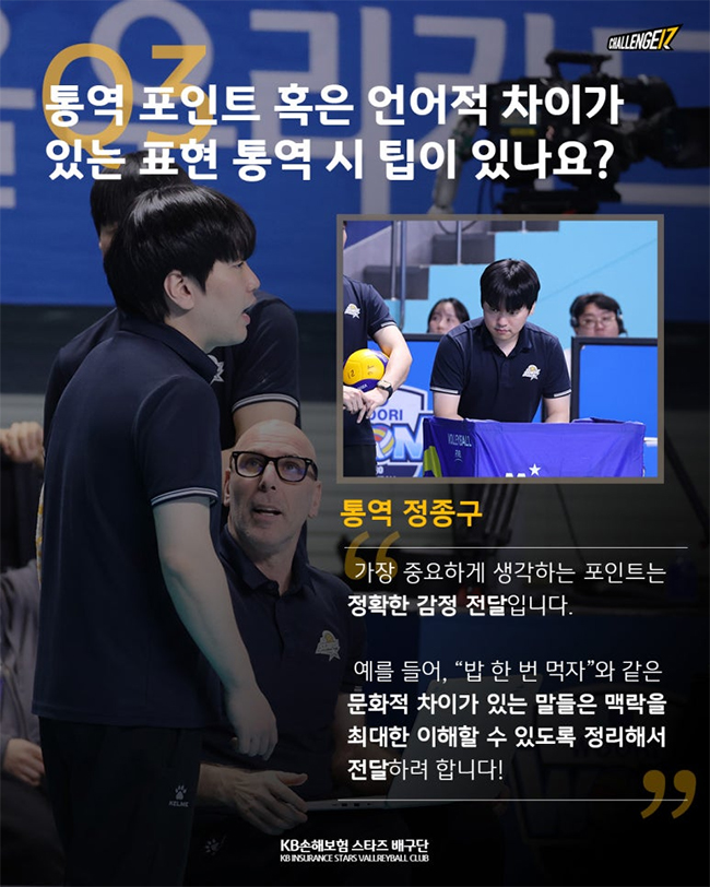 그 세번째 주인공은 손명국 매니저와 김요섭, 정종구 통역입니다!✨ 매 원정경기 승리 시마다 감독/코치진, 선수단, 팬 여러분 등 KB스타즈와 함께하는 누구든 챌린저17기가 찾아갑니다🏃➡️ 지난 4R 삼성화재, 우리카드전 찾아간 매니저와 통역! 그리고 과연 다음 원정 경기의 KB’s STAR 주인공은 누구일지~? #KB손해보험스타즈배구단 #남자배구 #KB스타즈 #손명국 #김요섭 #정종구 #챌린저17기 #KBsSTAR |