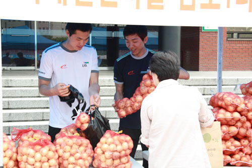 지난 6월 23일 LIG손해보험 배구단 선수들은 구미 LIG넥스원 희망바자회에 참석하여 손님들에게 직접 물건을 판매하였다. 팬싸인회 자리를 만들어 바자회에 방문한 팬들에게 싸인을 해주며 바자회의 자리를 빛내 주었다.