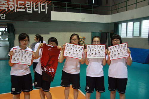 지친 고3생활의 위로를 위해 깜짝 여고방문을 한 LIG손해보험 배구단 선수들은 학생들에게 팬싸인회를 실시하고 반별로 포토타임을 가졌다. LIG손해보험 선수들은 학생들의 열광적인 성원으로 당황하였지만 마지막까지 학생들과 함께 즐거운 시간을 만들었다.