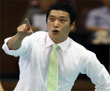 LIG손해보험 김상우 감독이 환한 미소를 지었다. 37세로 프로배구 최연소 사령탑인 그는 논리적인 화술이 돋보인다.