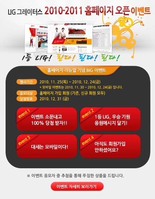 LIG손해보험 그레이터스 2010-2011 홈페이지 오픈 이벤트
