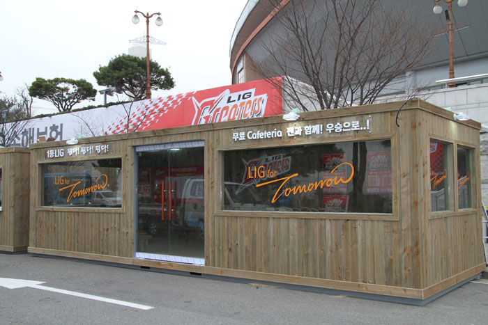 바로 경기장 입구 매표소 옆에 마련된 ‘무료 카페테리아’입니다. LIG손해보험 배구단은 구미 홈구장을 찾아주시는 팬들이 입장을 기다리는 찰나에도 보다 편하게 쉬어가시라고 ‘카페테리아’를 마련했습니다. 따뜻한 카페테리아에서 찬바람도 피하시고, 커피와 간식을 드실 수 있도록 준비했습니다. 구미 홈구장을 찾아주시는 그 순간부터 팬 여러분을 향한 LIG손해보험 배구단의 따뜻한 정성을 느껴보세요.