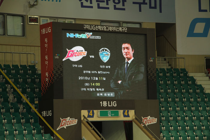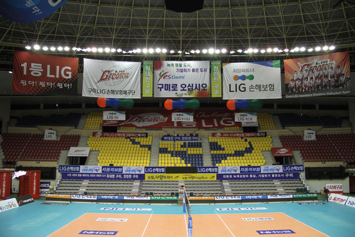작년과는 달리 VIP석과 일반석과의 경계를 줄여 팬들간의 위화감을 줄이고, 주요 광고판을 경북/구미 지역의 중소기업들에게 제공함으로써 연고지역과 함께 성장하는 LIG손해보험 배구단이 되고자 노력했습니다.