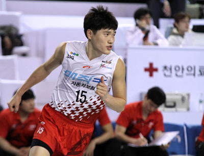 "승부의 키는 한기호" 준플레이오프 1차전서 삼성화재 블루팡스에게 패한 LIG손해보험의 키는 리베로 한기호가 쥐고 있다. LIG손보는 18일 구미 박정희체육관에서 벌어지는 준플레이오프 2차전을 앞두고 17일 체육관 적응훈련을 가졌다.