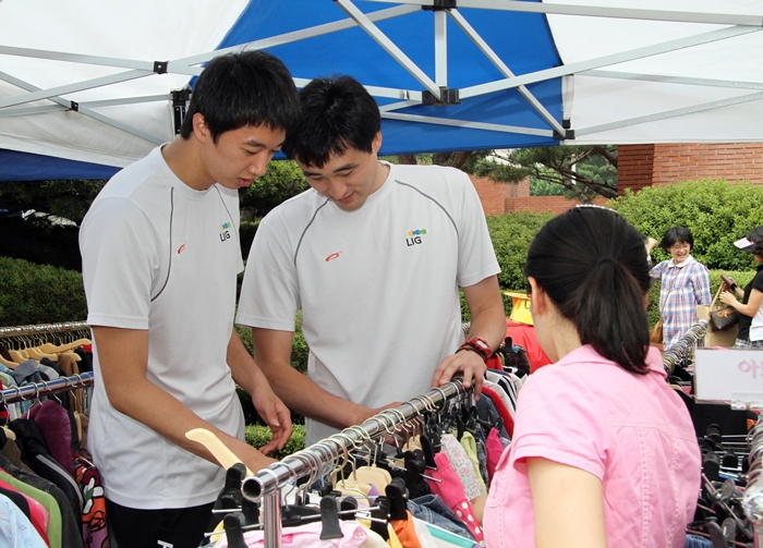 이 날 오전에는 올해로 세 번째 맞는 LIG 희망바자회에 참석하여 판매 봉사 및 팬 사인회를 진행했다. 오랜만에 LIG 선수들을 만나는 구미 팬들의 얼굴에는 반가움이 가득했고, 선수들이 직접 골라주는 물건들을 살펴보며 큰 관심을 보였다.