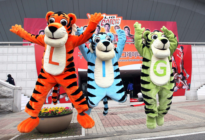 LIG를 상징하는 희망구름의 3색인 오렌지, 블루, 그린을 형상화한 라이거 3형제의 이름은 "희망이", "나누미", "꾸미" 입니다.