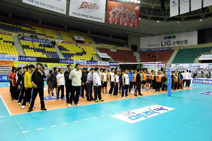 하지만 무엇 보다 아마추어 선수들의 눈길을 끈 것은 프로팀의 경기가 열리는 정식 코트에서 실전 경기를 뛸 수 있는 기회가 주어졌다는 것이다. 현재 구미를 연고지로 하고 있는 팀은 LIG손해보험 배구단이 유일하다. 여자부 경기가 없기 때문에 주말 오후에 배구장을 찾았던 팬들은 한 경기만 보고 돌아가야 하는 아쉬움이 컸고, 코트는 텅 비었다. 11-12시즌을 앞두고 연고지역의 배구 저변 확대를 고민하던 LIG손해보험 배구단은 주말 홈 경기 후 아마추어 선수들에게 배구를 통해 희망을 꿈꿀 수 있는 기회를 마련하기로 결정했다.
