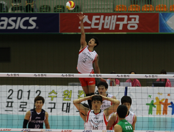 LIG손해보험이 러시앤캐시를 3:0(25:22 25:22 25:14)으로 완파하고 26일 열리는 결승전에 진출했다. 준우승을 했던 2007년 이후 5년 만의 결승 진출이다. 반면 작년 컵대회 준우승 팀인 러시앤캐시는 아쉽게도 준결승전에 만족해야 했다.