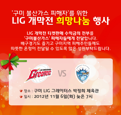 LIG손해보험 그레이터스 응원도 하시면서 지역주민들께 희망나눔을 실천해주세요.