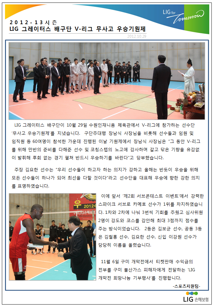 V-리그 무사고 우승 기원제
