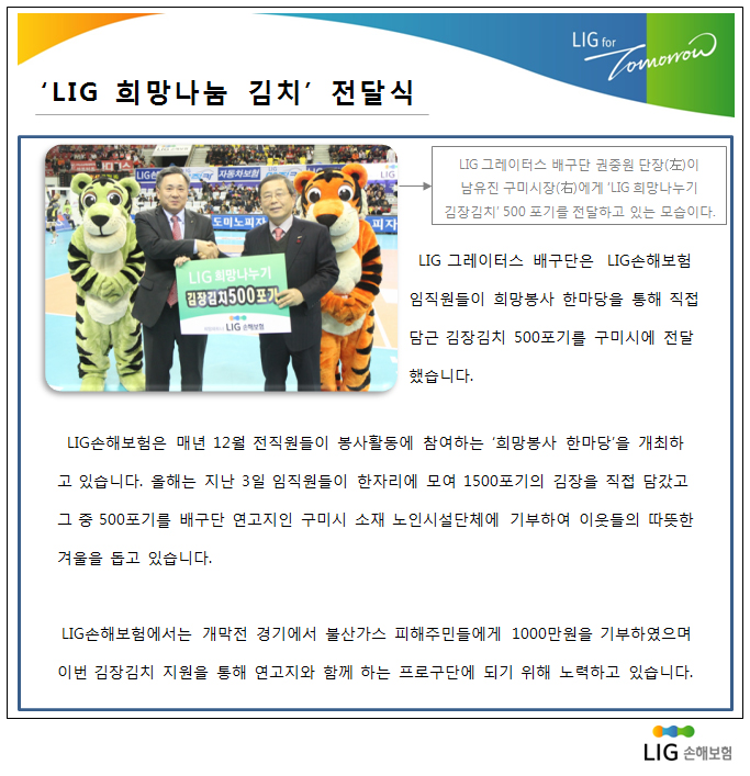 ''LIG 희망나눔 김치'' 전달식