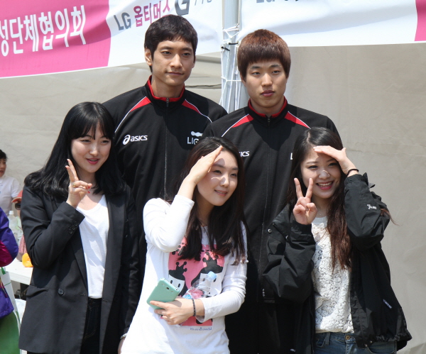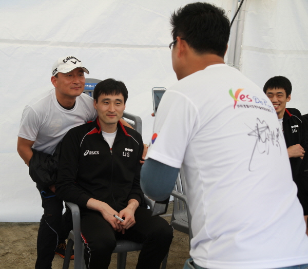 팬들과 친절하게 기념사진 찍는 선수들과 팬...