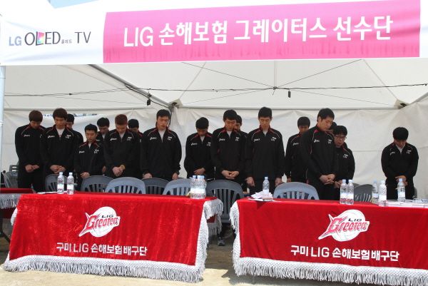 묵념하고 있는 우리 배구단 선수들