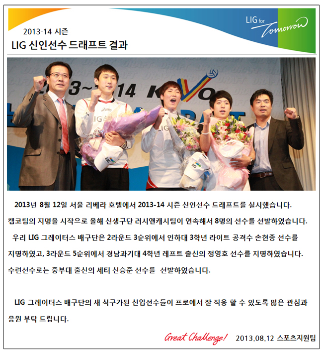 2013-14시즌 LIG신인선수 드래프트 결과