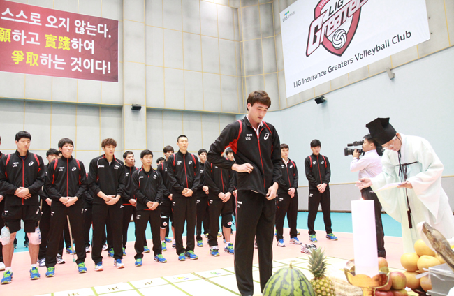 2013-14시즌 LIG 배구단의 우승을 염원하는 마음을 담아 우승기원제를 지냈습니다.