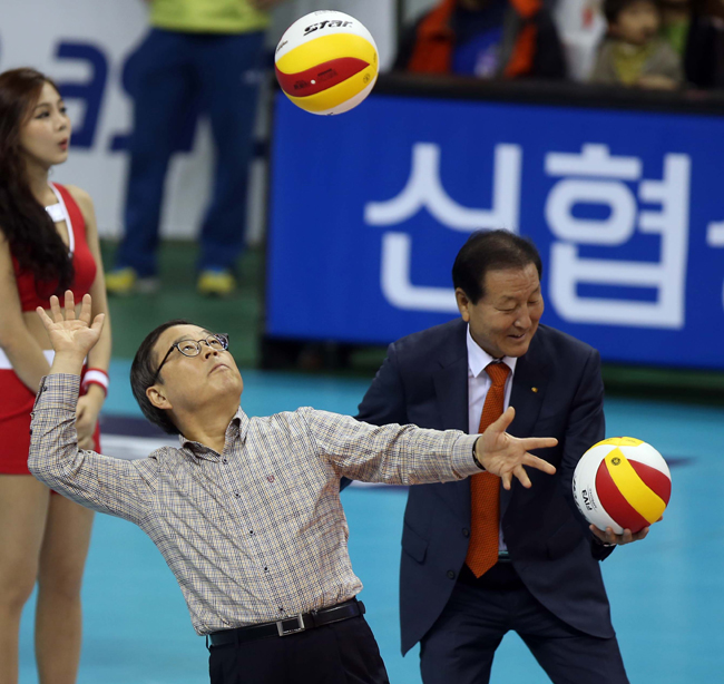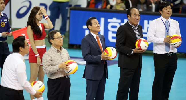 <아래 사진은 2013년 11월 3일 개막전 경기 구미 남유진 시장님외 관계자분들이 시구하는 모습입니다.>