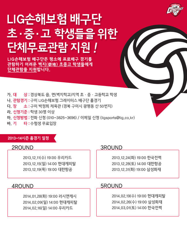 LIG손해보험 배구단 초중고 학생들을 위한 단체무료관람 지원