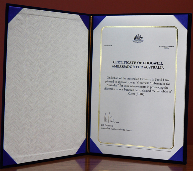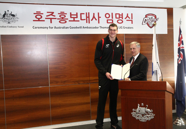 임명식은 주한호주대사관에서 대사관직원 및 LIG구단 관계자들이 참여한 가운데 호주대사의 인사로 시작되었습니다.