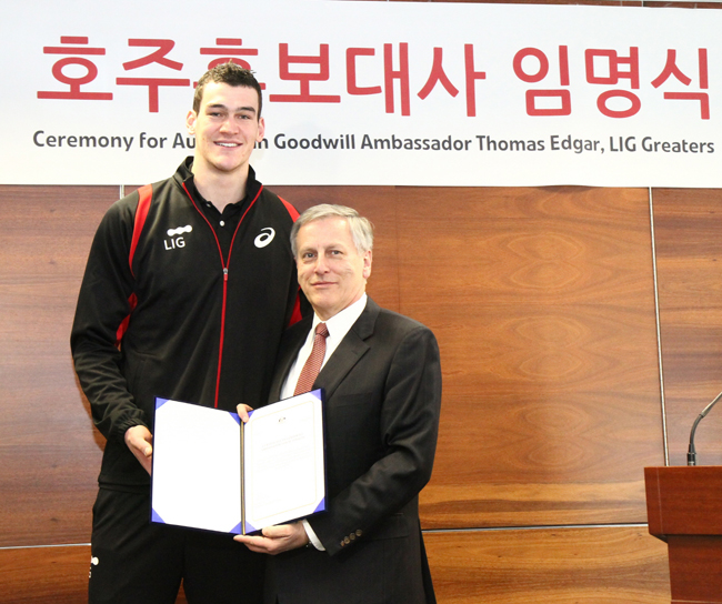 LIG손해보험 배구단 최고의 라이트 공격수 에드가 선수는 3월 3일(월, 15시) 호주홍보대사로 임명되었습니다.