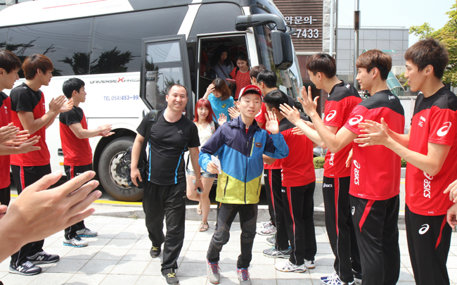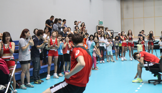 문용관 감독님을 비롯한 LIG배구단 선수들과 스탭들은 전국 각 지역에서 도착한 팬들을 입구에서부터 일일이 환영해주었습니다.