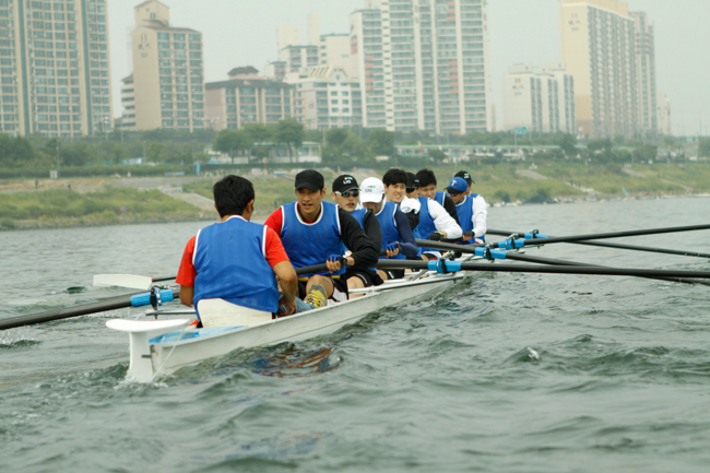 조정은 어느 한 명이 노를 빨리 저어도, 쳐져서도 안되는 종목으로 일정한 속도를 유지하며 모든 선수가 하나된 힘으로 노를 저어야 하는 매우 난이도가 높은 종목입니다. 때문에 선수들의 팀웍과 하나된 마음이 얼마나 잘 이루어지는가 관건입니다.