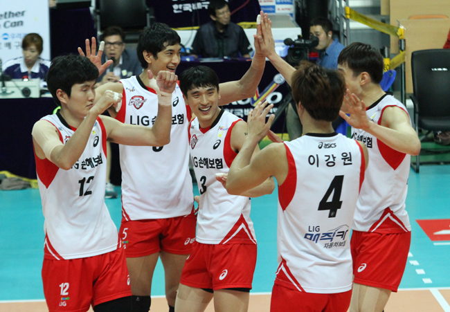 LIG배구단은 OK저축은행을 3대0으로 꺾고 '안산우리카드컵' 준결승에 B조 1위로 진출 하였습니다. 준결승전은 2014년 7월 26일(토) 15시, A조 2위인 우리카드팀과 결승진출 티켓을 놓고 안산상록수 체육관에서 맞대결을 펼칩니다. LIG배구단이 좋은 성적 낼 수 있도록 팬 여러분들의 많은 관심과 응원 부탁드립니다.