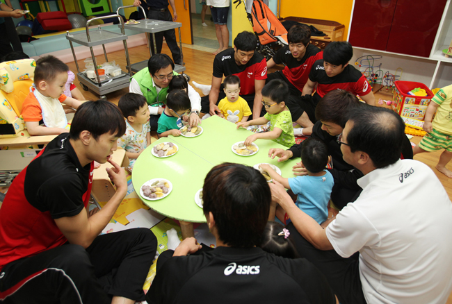 LIG배구단은 지난해부터 이 곳 영아원을 꾸준히 방문하며 아이들과는 이미 친숙하다. 특히, 이번 방문에서는 다가오는 추석을 즈음하여 아이들과 송편을 만들고 윷놀이를 하면서, 명절 음식 만드는 과정을 알아가고 전통놀이를 함께 즐기는 시간을 가졌다.