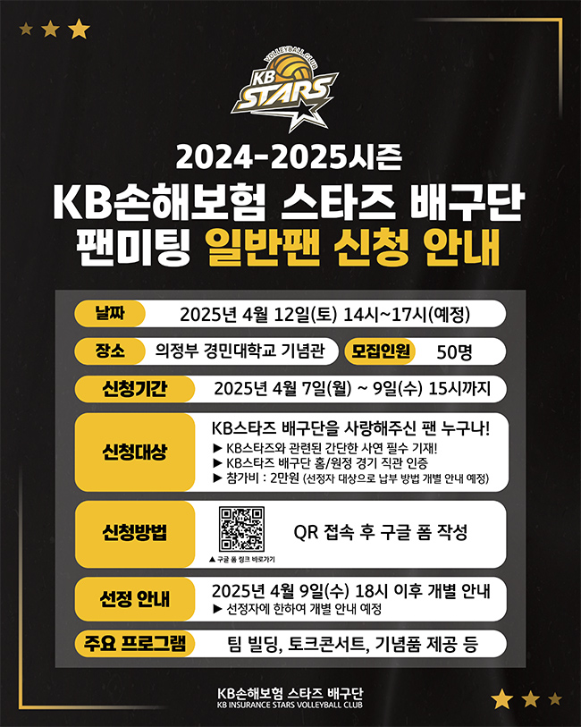 2024-25시즌 KB손해보험 스타즈 배구단 팬미팅 일반팬 신청 안내