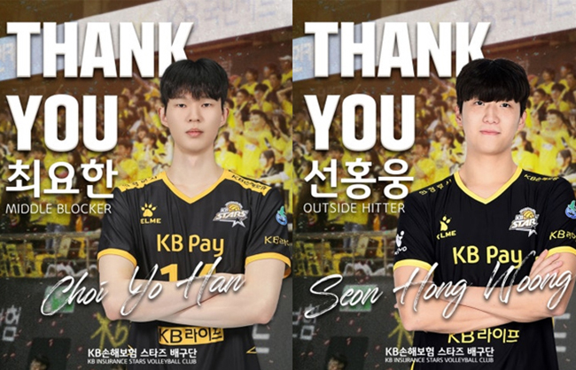 그동안 KB손해보험 스타즈 배구단과 함께한 최요한, 선홍웅 선수에게 감사드립니다.
