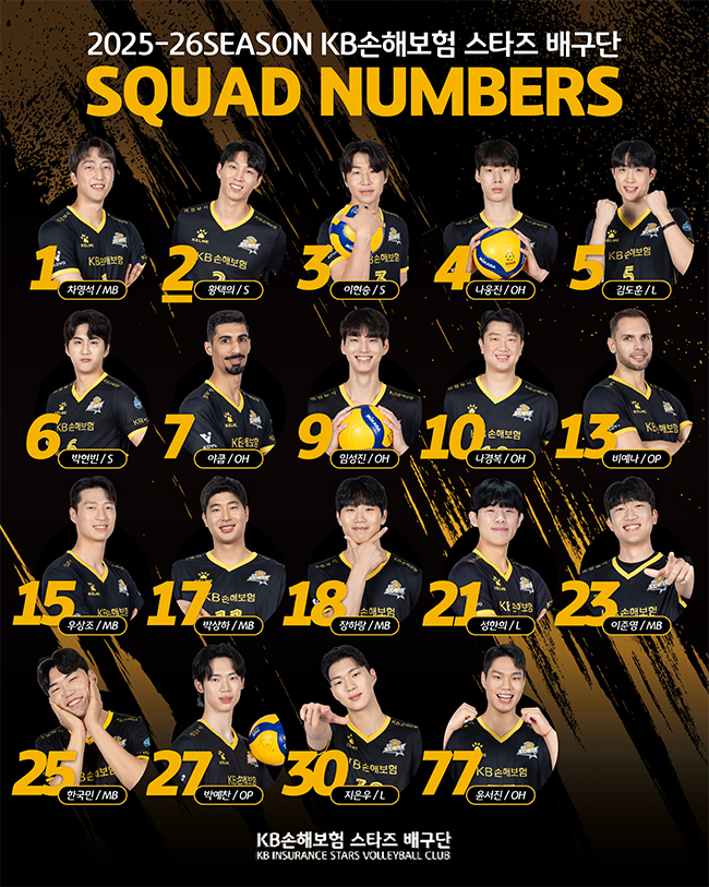 2025-26시즌 KB손해보험 스타즈 배구단 등번호를 공개합니다✨