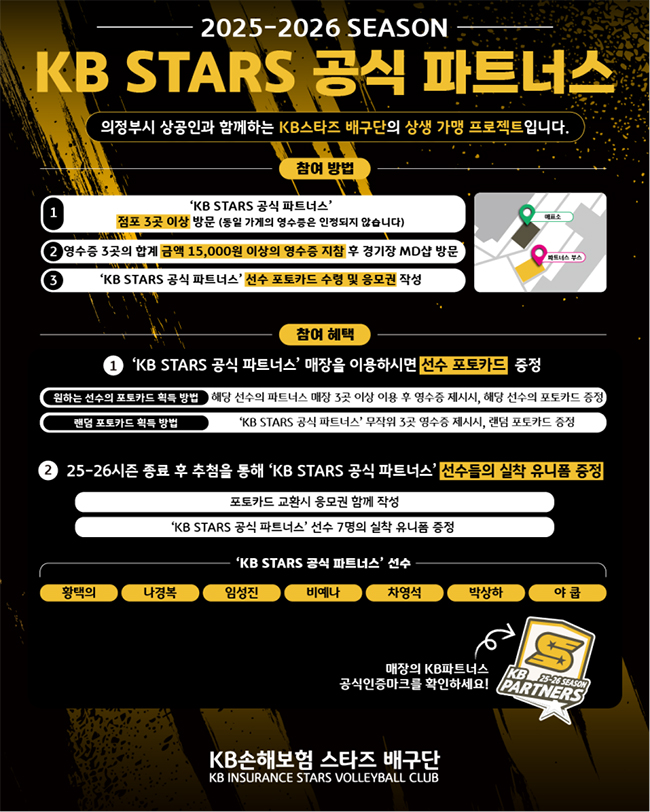'KB STARS 공식 파트너스' 매장 이용하고 선수 포토카드 & 선수 실착 유니폼 받아가자💛