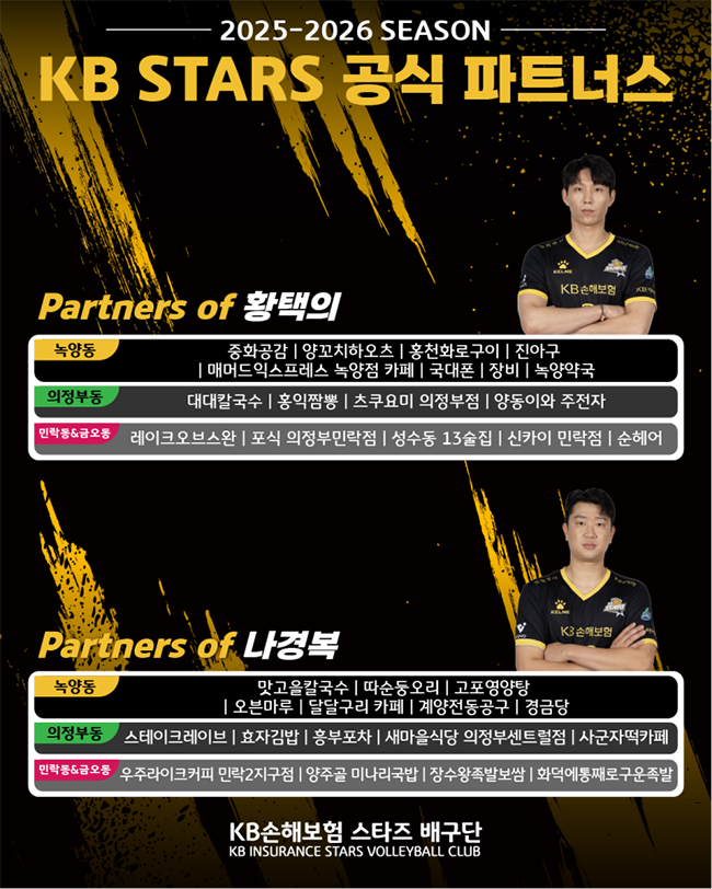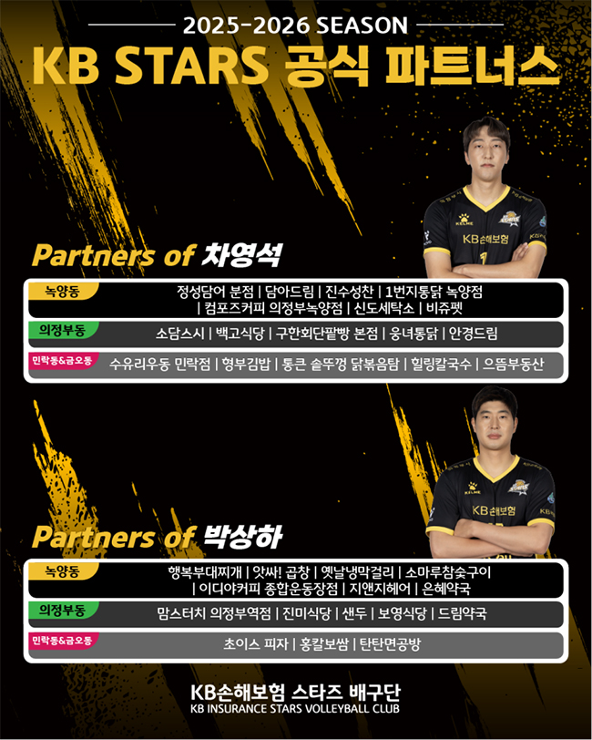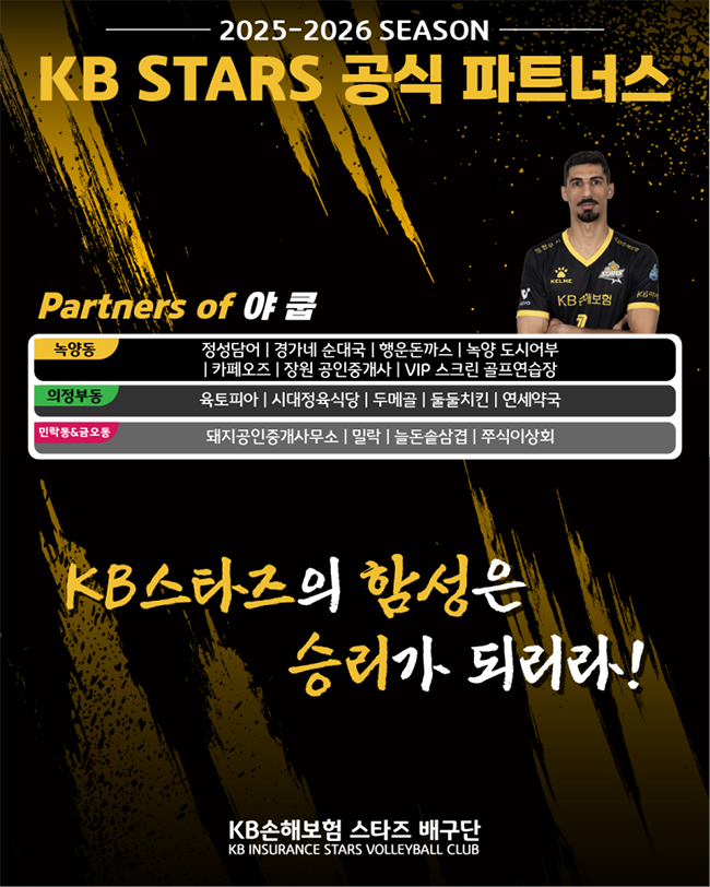 KB STARS 공식 파트너스는 의정부시 상공인과 함께하는 KB배구단의 상생 가맹 프로젝트입니다.
