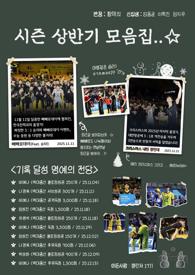 승리 선물 가져온 산타스타즈ㅣ 2025-2026시즌 3라운드 251225 vs 대한항공 스케치
