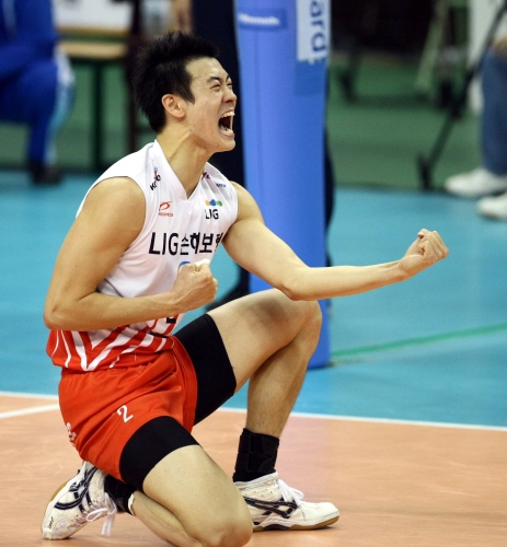 11일 LIG손해보험과 대한항공의 V리그 3라운드 경기. 3세트 중반 LIG손해보험 신인세터 황동일(23)이 상대 칼라의 강력한 스파이크를 블로킹으로 막아낸 후 특유의 허리돌리기 세리머니로 관중들의 시선을 사로잡았다.