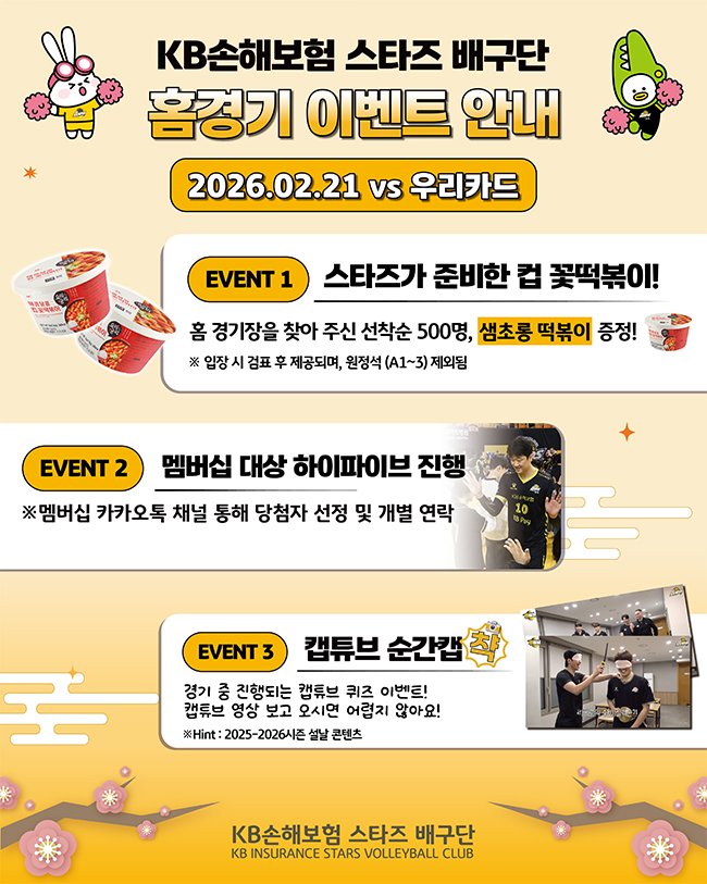 KB손해보험 스타즈 배구단 2/21(토) vs 우리카드 홈경기 이벤트 안내