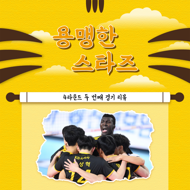 #챌린저13기 용맹한 스타즈 2022년 1월 5일 수요일 vs.삼성화재전 '용맹한 스타즈'의 4라운드 두 번째 경기 리뷰 끈질긴 플레이로 승점 획득에 성공하며 1위에 등극한 스타즈 듀스 접전 끝 세트를 가져온 선수들과 개인 6번째 트리플크라운을 기록한 케이타의 활약이 궁금하시다면 화면을 넘겨 확인해주세요! 다음 경기는 1월 8일 현대캐피탈전입니다. 스타즈가 1위를 이어나갈 수 있도록 많은 응원 부탁드립니다 새해 복 많이 받으세요 |