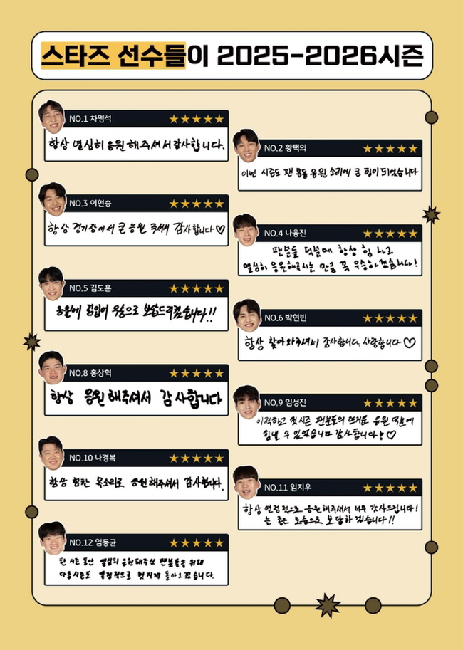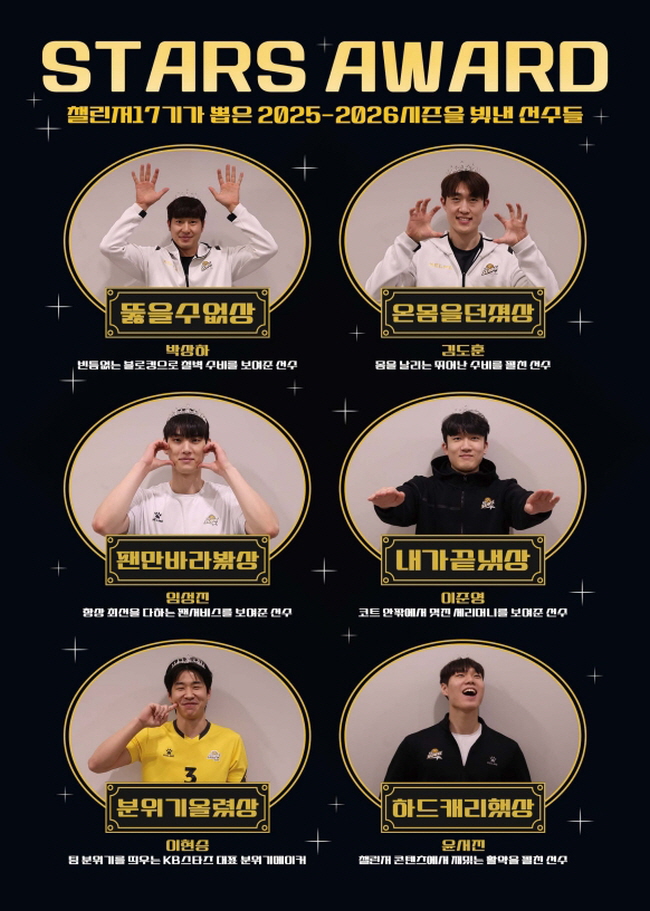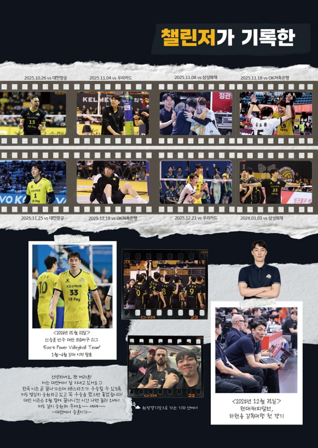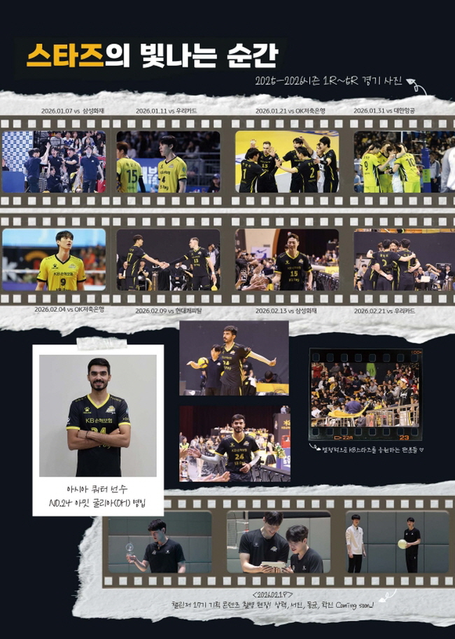 ![]() ![]() ![]() ![]() ![]() ![]() ![]() ![]() ![]() ![]() ![]() ![]() 챌린저 17기의 시선으로 담아낸 KB스타즈의 빛나는 순간들! 열정 가득했던 2025-2026 시즌 경기 사진부터, 팬들이 직접 뽑은 시즌 MVP '비예나' 선수의 진솔한 인터뷰까지! 아울러 팬들이 선정한 ‘가장 인상적인 성장 서사’의 주인공, 이학진 선수의 특별한 이야기까지 알차게 담았습니다.