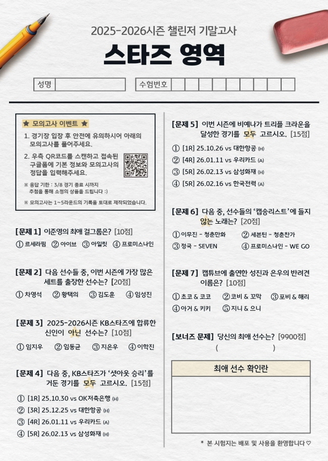 챌린저 17기의 시선으로 담아낸 KB스타즈의 빛나는 순간들! 열정 가득했던 2025-2026 시즌 경기 사진부터, 팬들이 직접 뽑은 시즌 MVP '비예나' 선수의 진솔한 인터뷰까지!